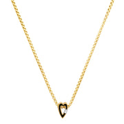 Our slide-on mini enamel heart necklace is handcrafted in 14k gold, with a black enamel face, and a diamond baguette.
