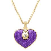 Designed to honor both self-love and devotion to others, the Love Pendant celebrates the connections that matter most. This handcrafted piece is a luminous addition to our Perfect World collection. Crafted in solid 14k gold and hand carved purple charoite with diamond accent.