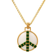 The midsize peace necklace is intended to represent your personal journey to attaining soul fulfillment and inner peace. This pendant is crafted in 14K gold and features a baguette inlay and diamond bail that can be attached to most chains and links.
