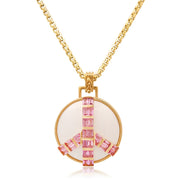 Midsize Peace Necklace in White Onyx and Pink Sapphires