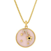 - Pink opal with black diamond set in star and pave' diamond zodiac sign