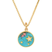 Zodiac pendants in solid 14K gold and hand-cut colorful stones. Wear your own sign or the signs of those dear to you, as symbols of your love, dreams and devotion. Back of pendant displays two characteristics of the zodiac sign.