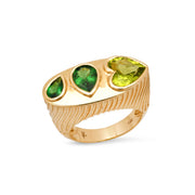 The ripple ring is crafted in 14K gold featuring our rippled texture and set with vibrant hand cut gemstones.
