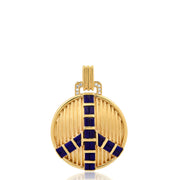 Midsize Peace Pendant in Ribbed Gold and Lapis