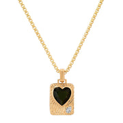 The ripple heart amulet is crafted in 14k gold featuring our rippled texture and set with a vibrant hand cut heart gemstone and pear diamond.