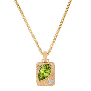 The ripple heart amulet is crafted in 14k gold featuring our rippled texture and set with a vibrant hand cut pear gemstone and heart diamond.